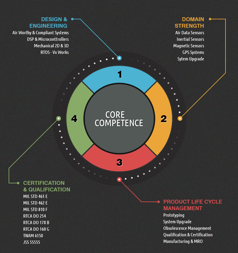Our core expertise lies in Digital Signal Processing (DSP) & Microcontrollers, RTOS – Vx Works, Mechanical Design Capability in generation of 2D manufacturing drawings and 3D models based on schematics provided and development of Airworthy and Compliant systems.