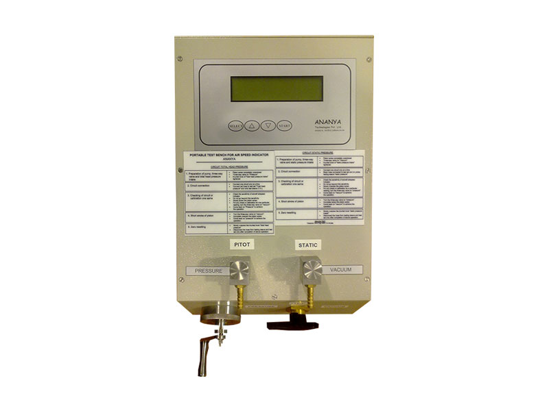 Air speed indicator is used for testing and calibration of air speed and altimeter separately and also as a system installed in helicopter. Air speed indicator consists of a piston screw type pump which can produce Pitot or static pressure for checking the Helicopter instruments / System.