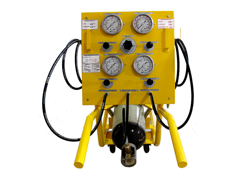 Salient Features:The Nitrogen Ground Charging Trolley is designed and developed to charge Aircraft Accumulators, Tyres, Shock struts, etc. in-site. This is mobile and can be moved on the ground easily.