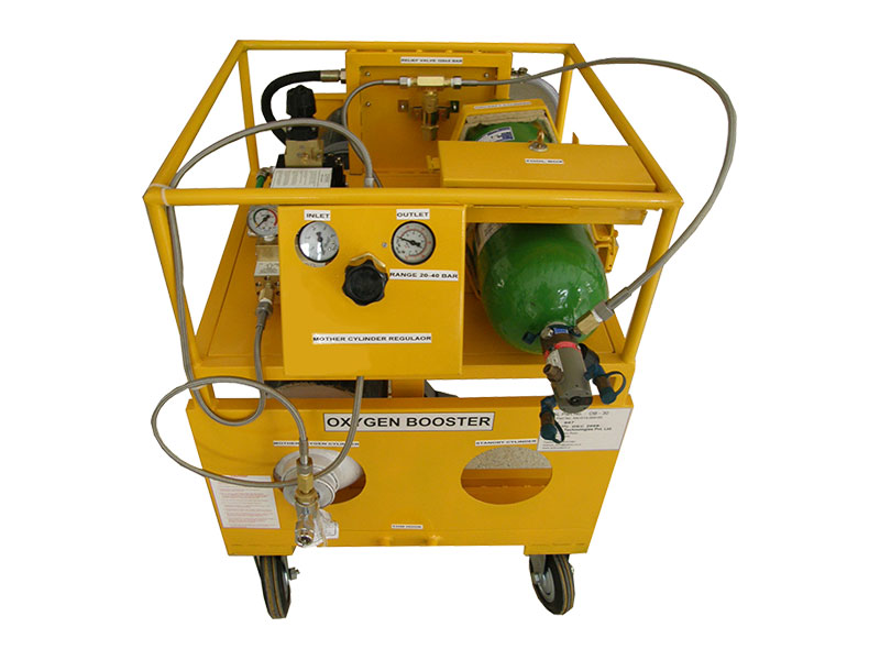 The ‘Oxygen Booster’ is designed to boost the low oxygen pressure input from mother cylinder to high oxygen pressure output. This high pressure output is connected to recharge the Aircraft oxygen cylinder. By this way we can fully utilize the mother oxygen cylinder.