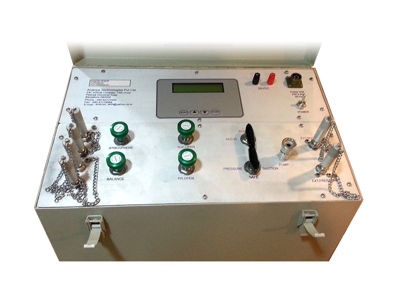 In addition, to conducting leak tests on the Pitot and static systems the test set could also be used to check proper functioning of certain aircraft instruments by comparing their performance with the corresponding digital manometer fitted on the test set. In case external pressure and suction are available it could be connected to the test set for which suitable provision has been made.